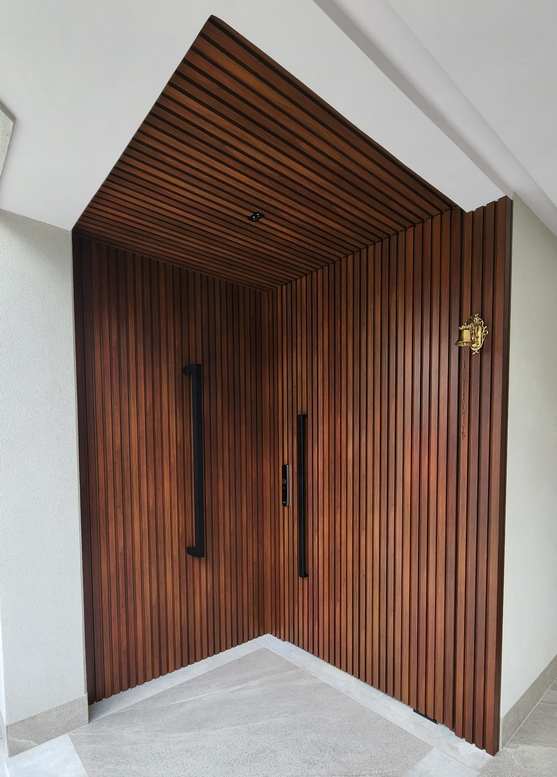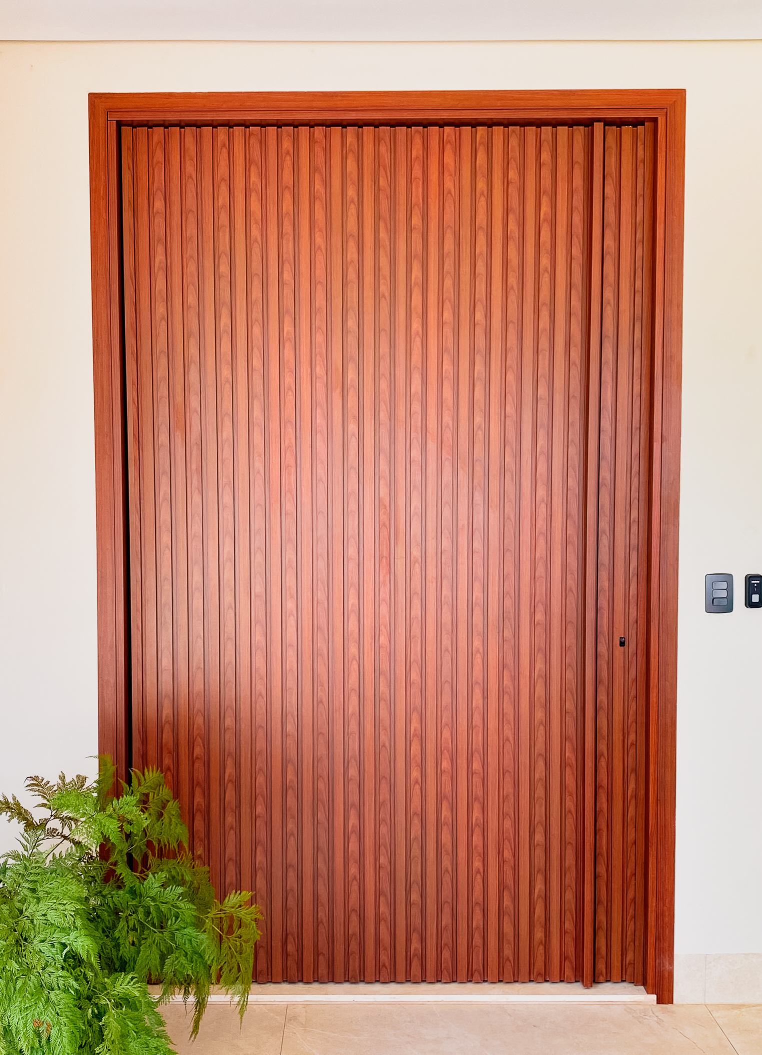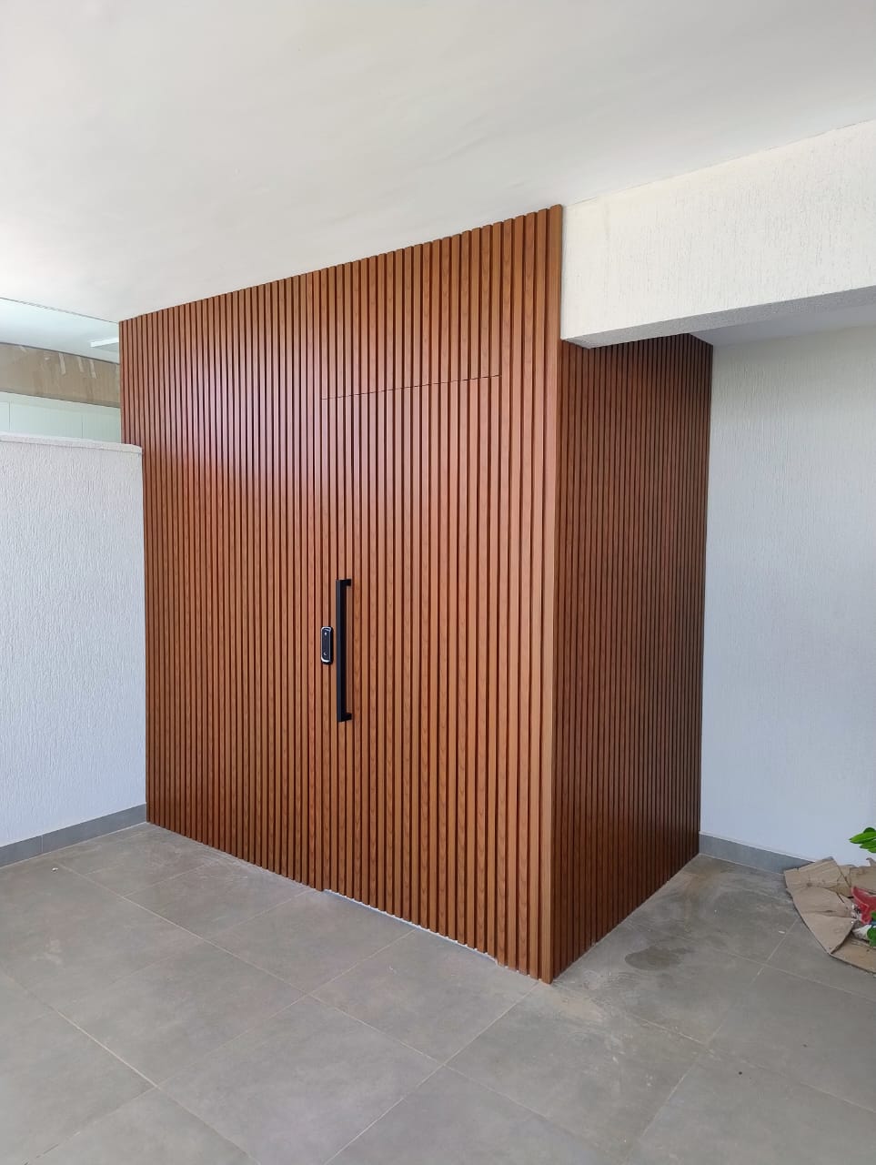 O lambril ripado é usado tanto no acabamento de portas como em painéis. Ele oferece um visual moderno e sofisticado, muitas vezes com acabamentos que simulam a aparência da madeira, mas sem a necessidade de manutenção constante